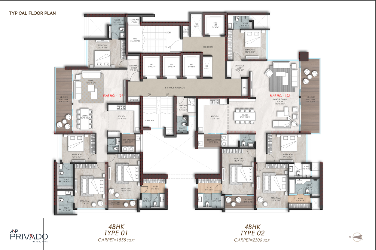 - Luxury Residences: Spacious 3 & 4 BHK homes with private decks