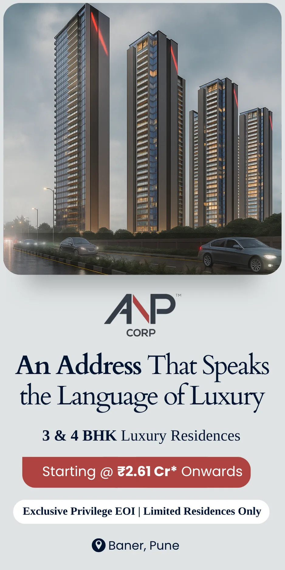 Get in touch today for ANP Privado Baner Pune luxury residences and secure your place in Pune's most awaited landmark